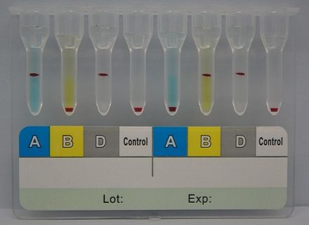 全血:取生理鹽水1-2滴,分別滴于A,B和陽性對照孔中,用牙簽輕輕混勻,上下左右傾斜,注意不要讓液體溢出。2分鐘內(nèi)觀察結(jié)果。