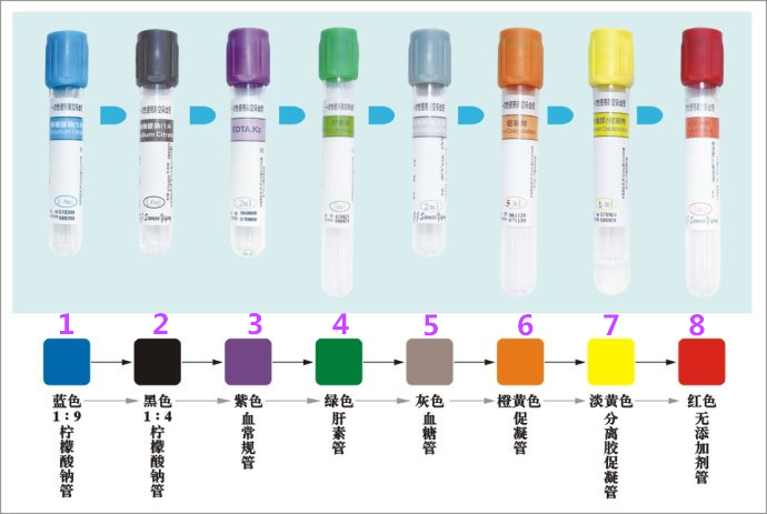 1、枸櫞酸鈉(也稱檸檬酸鈉)凝血試驗管:淺藍色頭蓋,枸櫞酸鈉主要通過與血液標本中Ca2+螯合而起抗凝作用。適用于凝血試驗,國家臨床實驗室標準化委員會(national committee for clinical laboratory standards,NCCLS)推薦的抗凝劑濃度是3.2%或3.8%(相當于0.109mol/L或0.129mol/L),抗凝劑:血液=1:9。